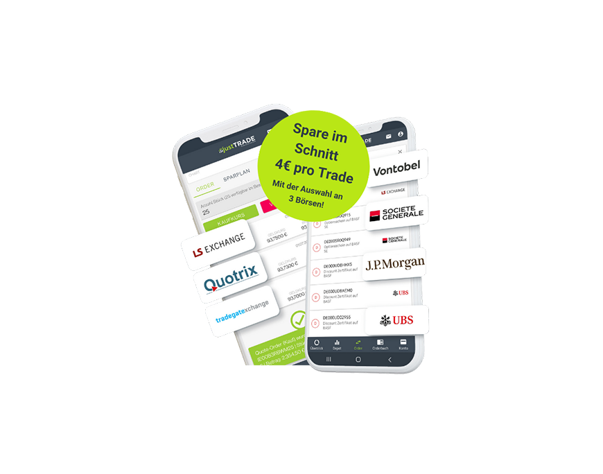 • 4 € pro Trade im Schnitt sparen Dank der Auswahl an 3 Börsen & Quote-Request-Order